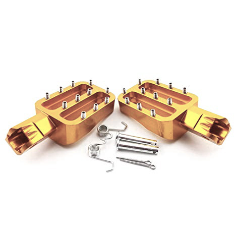 Фрезерованные подножки для питбайка из алюминевого сплава. Большая площадь и противоскользящие шипы. В комплекте подножки, штифты, шплинты и пружины. Подходят практически на любую модель питбайка.